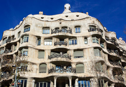 ラ・ペドレラ(石切り場)とも呼ばれ、当初は高級アパートとして建設されました。カサ・ミラのテーマは山。屋上の階段の出口や換気塔、煙突などは山の尾根から突き出た峰々を表しています。カサ・バトリョやグエル公園と同じく、世界遺産に登録されています。