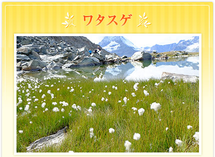 ふわふわした様子はまるで雪のように水辺に群生しています。運が良ければ山をバックにした写真を収めることが出来るかも?!