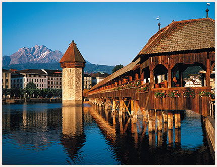スイス中央に位置する古都。水の都として知られ、美しいフィアバルトシュテッター湖と見事なカペル橋が織り成す風景はまるで絵画の世界。霊山として知られるピラトゥス山やリギ山などの周辺の山々に囲まれたこの街は、少し足を伸ばせば訪れる場所が数多くあります。