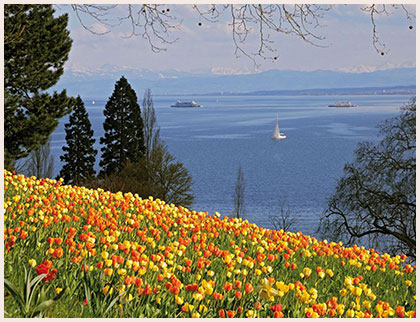 スイスとドイツの国境沿いにあるボーデン湖。その中にポツリと浮かぶ花の島がマイナウ島です。色鮮やかに咲く花や樹齢150年の樹木が立ち並ぶ公園、バロック様式の宮殿や教会の雰囲気など、小さな島にもかかわらず年間約100万人の人々が訪れる観光地となっています。