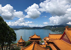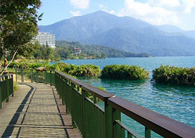 「日月潭湖畔巡り」…台湾で最も大きな湖(ダム湖を除く)で、湖の北側が太陽(日)の形、南側が月の形をしていることから日月潭と呼ばれています。