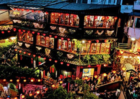 雑貨や台湾茶などの土産屋、食べ歩き店が沢山並ぶ台湾人気のスポットです。