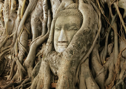 ワット・プラシーサンペットと並び重要とされている寺院がワット・プラ・マハタート。かつては塔の頂上が黄金に輝いていたこの寺院もビルマ軍の侵略により廃墟と化し、今は木の根の間に埋め込まれた仏像の頭や、頭部がない仏像、崩れ落ちたレンガの壁や礼拝堂の土台が残るのみとなっている。また、アユタヤのワット・プラ・マハタートを有名にしたのは石仏の頭部が根の部分に取り込まれた1本の菩提樹である。ビルマ軍が切り取り放置した仏像の頭部が、長い年月の間に木の根に取り込まれ、木を切らない限り取り出すことができなくなったもので、戦争の悲惨さを如実に物語っている。この仏頭の前で写真を撮る場合、仏頭よりも頭が低くなるように座って写真を撮らなければならない。