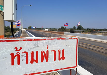 オーストラリアの援助で完成した、メコン川をまたいだ最初の橋。1994年4月に開通し、全長は1174mとなっており、途中の国境手前までは歩いて行くことができる。