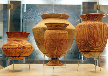 この遺跡の特徴は埋蔵された人骨とともに大量に出土した素焼きの土器。独特の彩色と紋様が施された優美なかたちの土器はバンチェンだけのオリジナルで今やウドーンターニーのシンボルともなっている。