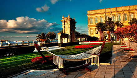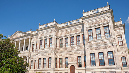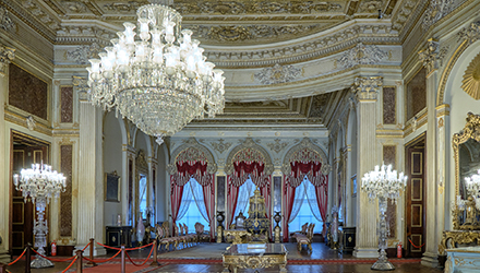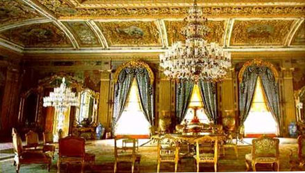 オスマン帝国の近代宮殿です。1856年に完成した宮殿はヨーロッパ風にデザインされています。その内装は赤を基調とした豪華絢爛な調度品や家具で飾られ、入り口の大きいシャンデリアが一際輝いています。現在もトルコ大統領が海外からの来賓との会議などで使用しています。
