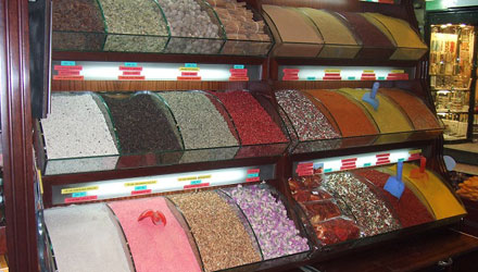エジプシャンバザールは小さなグランドバザールと言われますが、ハーブ、調味料やトルコ人が日常に使う商品が多く並んでいます。オスマン帝国時代にエジプトからの税金で建てられたため「エジプシャン・バザール」と名づけられています。