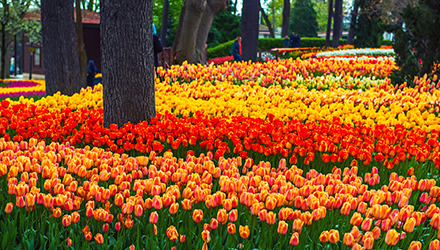 4月になるとチューリップ色に染まるエミルギャン公園。チューリップが実はトルコ発祥ということをご存知ですか。そのチューリップのお祭りが毎年4月に開催されます。(※期間は前後します)