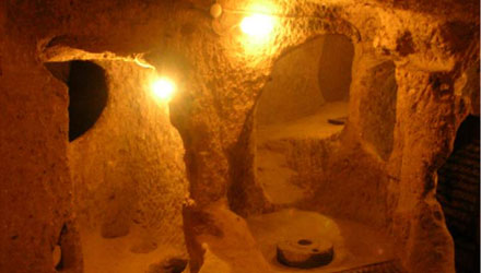カッパドキアにはいくつかの地下都市が迷路のように広がっています。井戸やキッチン、礼拝堂、学校の教室だった場所などを見学し、当時の生活に想いを馳せます。地下8階までありますが、現在4階までご覧いただけます。