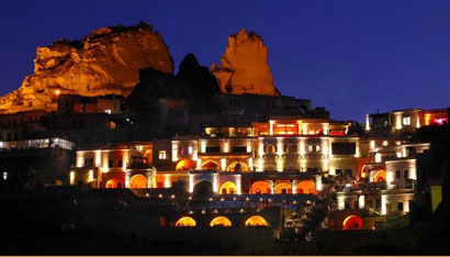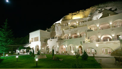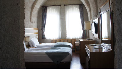 カッパドキアの楽しみは観光だけでなく、宿泊にもあります。多くのコースで洞窟ホテルでの滞在をお楽しみいただけます。洞窟ホテルとは、その名の通り、洞窟をくり抜いて造られたホテルです。その特性上、ジャグジーつきのお部屋や、インテリアにこだわったおしゃれなお部屋、美しい岩のアーチで飾られたお部屋など、同じホテルでもお部屋のタイプや趣向は様々です。カッパドキアはワインの産地としても有名で、ワイナリーを有しているホテルもあります。