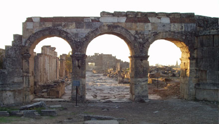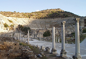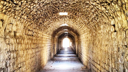かつてのペルガモン王国の都市遺構。アスクレピオンという当時の総合医療施設が残ります。「聖なる道」と呼ばれるトンネルを抜けた先には再生のシンボルだった蛇が彫られた石柱があります。