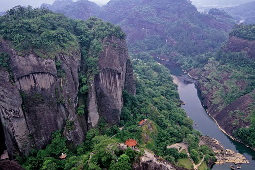 「武夷山」は武夷山風景区と自然保護区を含んでおり、周囲60平方キロに渡ります。一番風光明媚な観光地は九曲渓で、渓流の水は青く、山の景色も楽しめます。川下りも、観光客に人気があり、10キロの距離を2時間近くかけてゆったりと自然を満喫することができます。その他にも、武夷山の中で最も美しいとされる天遊峰や、隠屏峰に囲まれた中にある茶洞、宋の時代の窯の遺跡や、武夷宮などの見所も点在し、ゆったり観光が楽しめます。