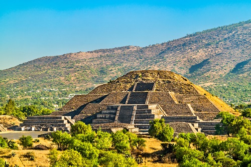 見所はテオティワカン最大の建造物である高さ65メートルの「太陽のピラミッド」と、高さ45メートルの「月のピラミッド」。この2つの遺跡を結び、都市の中心を南北に貫く「死者の道」も有名です。