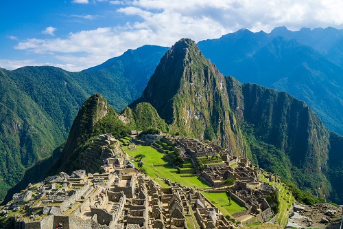「マチュピチュ」とは「老いた峰」という意味で、クスコからウルバンバ川に沿っていくこと約114キロのジャングルの中にあります。標高およそ2280メートル、アンデスの断崖の上にあることから、スペイン人の征服者の目に触れることなく残ったのであろうといわれています。なぜ、わざわざ山の頂に建造したのか、どのようにして石を運んだのか、何の目的で造ったのか、どのような人々が実際に生活していたのかなど、まだまだ謎多き遺跡。周辺のジャングルと併せて、1983年にユネスコの世界複合遺産に登録されました。