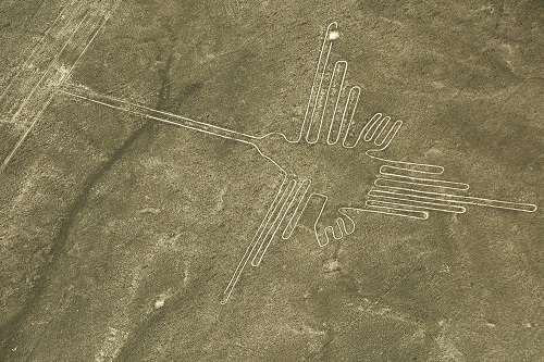 乾燥した平原地帯の大地に、約70の動植物の絵、700以上に及ぶ幾何学模様が描かれています。あまりにも巨大な絵が多く、空からでないと殆どの地上絵の全体像の把握が困難です。誰が、何のために、どうやってこのような巨大な地上絵を何故描いたのか。ここもまた謎の多い場所です。ナスカの地上絵の中を横切るパンアメリカン・ハイウェイの道路沿いには、地上絵の研究に生涯をかけたマリア・ライヘ女史が建造したミラドール(展望台)があります。主な図柄は、コンドル、ハチドリ、イヌ、宇宙飛行士、サル、ペリカンなどです。
