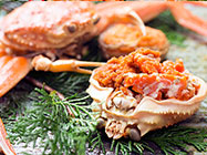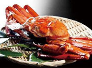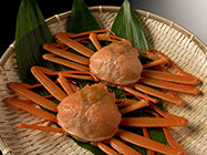松葉ガニの大きい殻にぎっしりつまった身は、歯ごたえがしっかりして、濃厚な味わいが特徴です。