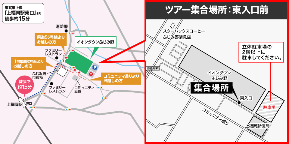 ※「イオンタウンふじみ野」集合場所へ自家用車でお越しのお客様は、駐車位置指定があります。
