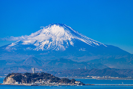 湘南海岸に浮かぶ小島。島内には音楽の神様と称される弁財天を祀った江島神社やイギリス式庭園サムエルコッキング苑、別名江ノ島シーキャンドルと言われる展望灯台があります。