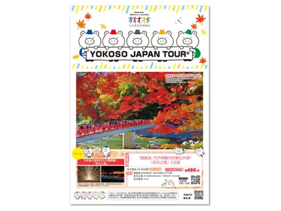 全世界から参加できる日本国内旅行専用ツアー「YOKOSO JAPAN TOUR」。予約は英語と中国語で日本の住所や日本の電話番号の記入は不要!日本の日帰りから宿泊プランまで常時数千コースをご用意。日本のディープな魅力を得意とするクラブツーリズムが企画・運営。