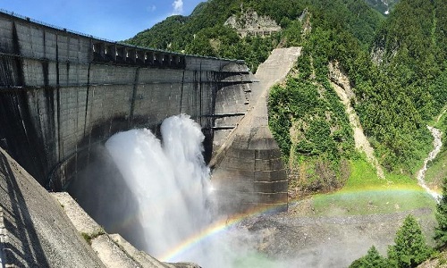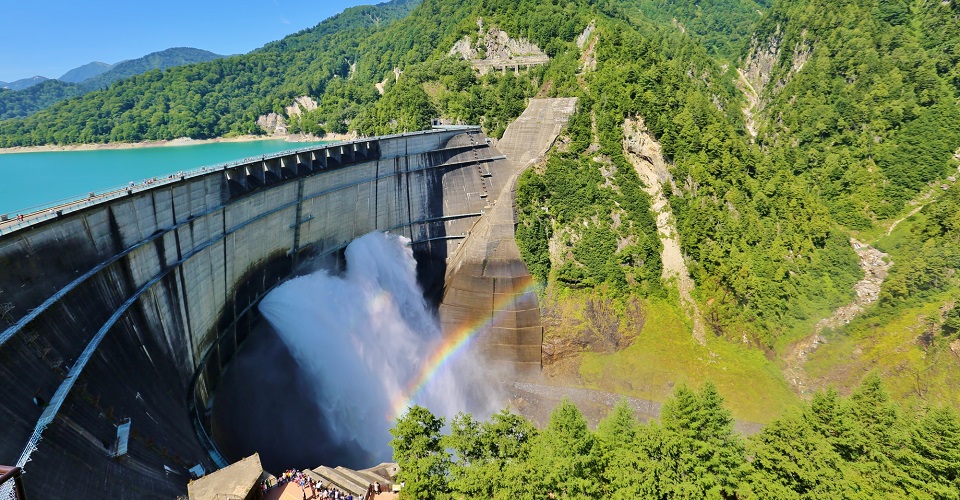 黒部ダムの観光放水期間は、6月26日~10月15日。運がよければ虹が見られるかも(イメージ)