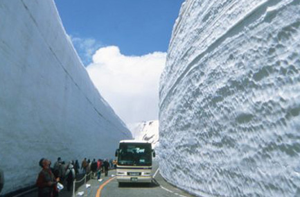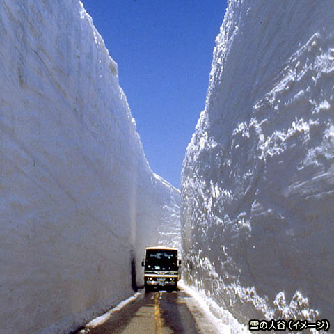 標高約2,450メートルにある富山県室堂(むろどう)駅から徒歩5分にある大谷は、吹きだまりのため積雪が多く、高さ20メートルを超えることがあります。この大谷を通る立山有料道路に積もった雪を除雪してできるのが、有名な「雪の壁」で、壁が連なる約500メートルの区間を「雪の大谷」と呼びます。そして雪の壁の中を歩くことができる「雪の大谷ウォーク」は4月中旬から6月中旬まで楽しめる春のイチオシイベントです。雪の大谷を歩き進むと壁の向こうには立山連峰の絶景が待っています! この時期だけの立山黒部アルペンルート「雪の大谷」で大自然の驚異を体感しませんか?