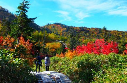 東西20km、南北3kmにわたって広がる溶岩台地の大高原です。夏には「チングルマ」や「イワカガミ」など高山植物が咲き揃い、秋は紅葉で人々の目を楽しませてくれます。
