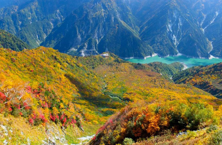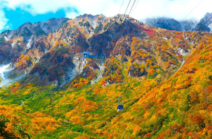 アルペンルートの紅葉は標高が最も高い室堂では9月中旬から紅葉が始まります。 下界よりも速いスピードで季節が進むため、タイミングが良ければ「山の上は雪景色」「中腹は紅葉・黄葉」「麓は今から色づく緑樹」という、いわゆる「三段紅葉」を目の当たりにすることができます。 なかでも「立山ロープウェイ」から見下ろす「タンボ平の紅葉」は圧巻! どんなテレビドラマよりもドラマチックで記憶に残る「秋」を探しに出かけましょう!