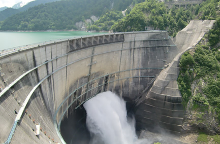 関西の電力供給に大きく貢献するこのダムは、見どころ満載の観光スポットでもあります。特に、毎年夏から秋にかけて行われる「観光放水」に注目。毎秒約10~15tの水が音を立て流れ落ちる様子はまさに絶景です。
