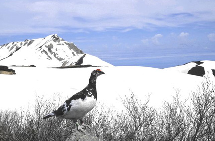 氷河期からの生き残りといわれ、長野・岐阜・富山の県鳥にもなっている「雷鳥」に出会ったことがありますか? 国の特別天然記念物に指定されている雷鳥に出会える確率がもっとも高いのは、縄張り争いの後、巣を守る様子が多く見られる6月。体長40cm前後で鳴き声は「グェ~~」というカエルのような声。 鳥にしては太い足を持ち、ハイマツという背の低い松林の中で生活します。 6月にアルペンルート内に宿泊するコースに参加すると、高い確率で雷鳥をご覧いただけます。