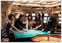 大人な夜はカジノで運試し。ブラックジャック、スロットなど初めての方も楽しめるカジノフロア。