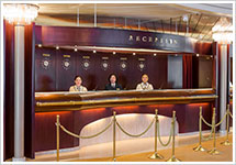 クルーズ中、ご不明な点がありましたらお気軽にお立ち寄りください。また客室からのお電話でのお問い合わせにも24時間対応しております。