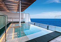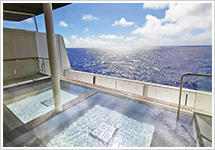 展望大浴場から眺める大海原。心もからだも美しくなるサロン&スパ。乗船した方だけが体感できるリラクゼーションをお楽しみください。