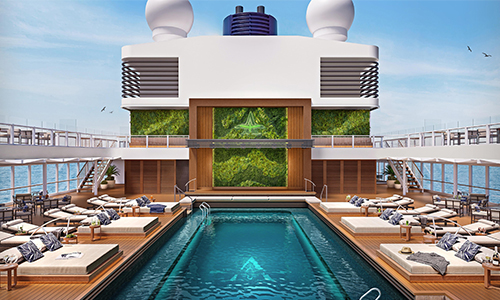 そして、ラグジュアリーなビーチリゾートを感じさせる、プールとプールサイドバー、露天風呂では、洋上でしか得られない極上のリラックスタイムをお楽しみください。