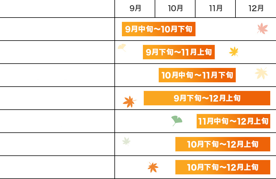 近畿エリア 見頃時期:10月上旬~12月上旬