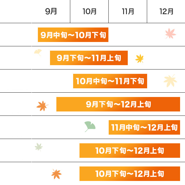 北海道エリア 見頃時期:9月上旬~11月上旬