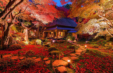 紅葉時期にはライトアップ!2つの庭園が魅せる侘び寂びの景色