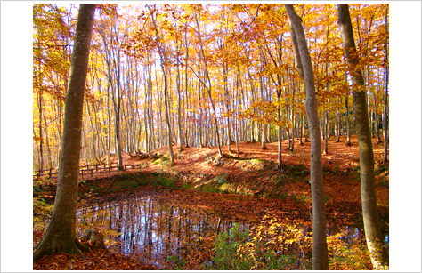 黄色一色に色づく美しきブナ林・・・美人林