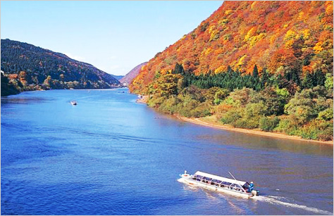 松尾芭蕉が“五月雨を集めて早し最上川”と詠んだ渓谷の紅葉。郷愁ただよう船頭さんの舟歌に酔いしれる約1時間の舟旅もおすすめです。