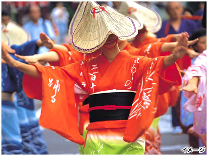 おわらで最も特徴的といわれるのは、男女共に深くかぶった編み笠と、力強い躍動感あふれる「男踊り」と、流れるようなしなやかな艶やかさをもつ「女踊り」。