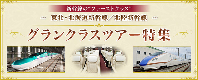 新幹線のファーストクラス「グランクラス」で行くツアー・旅行なら、クラブツーリズム!上質で洗練された車内、スイッチひとつで最大45度までリクライニングする座席で寛ぎの旅を!北海道、東北、長野、北陸への旅行は快適な新幹線「グランクラス」利用がおすすめです。ツアーの検索・ご予約も簡単。