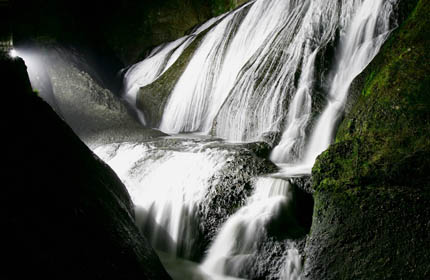 秋の紅葉と迫力のある滝から冬の氷瀑まで、移りゆく自然をライトアップし、幻想的な絶景をご覧ください。