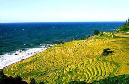 日本海に面して、小さな田が重なり海岸まで続く絶景は、奥能登を代表する観光スポットです。 水田一面あたりの面積は約18平方メートルと狭小で約4ヘクタールの範囲に1004枚もの小さな田が重なり合いながら海岸まで続いており、「日本の棚田百選」、国指定「史跡名勝記念物」に指定されています。
