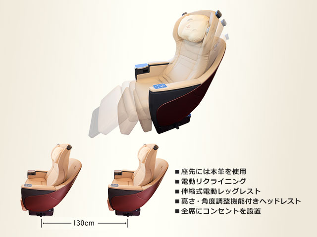 シートを最大までリクライニングさせた範囲まで覆う「バックシェル」を日本で初めて全席に設置。