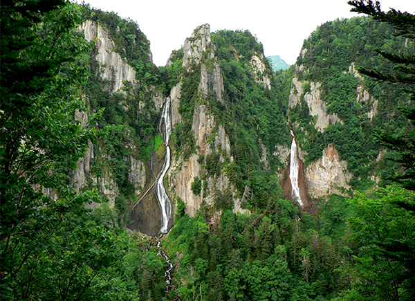 大雪山国立公園に位置し、石狩川上流部の、柱状節理の断崖絶壁断が約24kmも続く峡谷。周辺は大原生林で、雄大な渓谷美が広がる北海道屈指の景勝地。