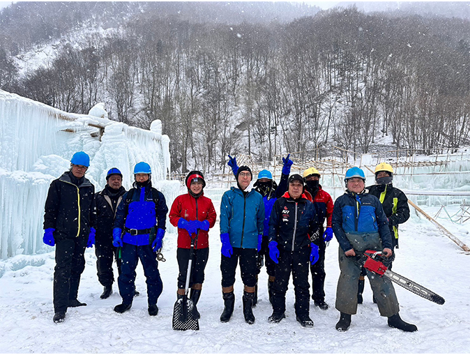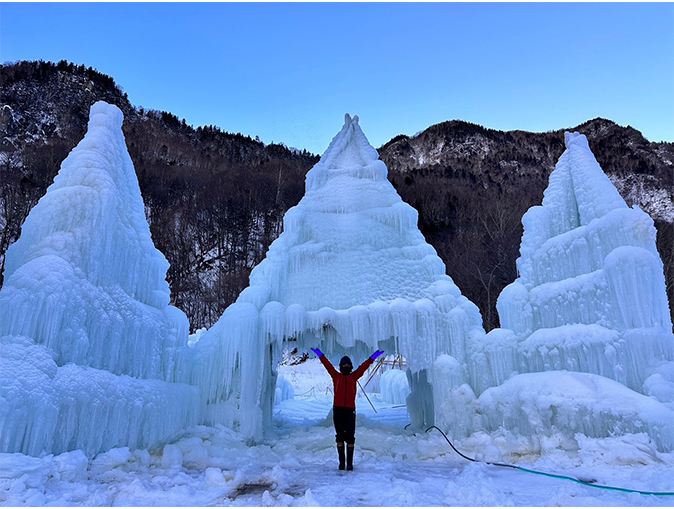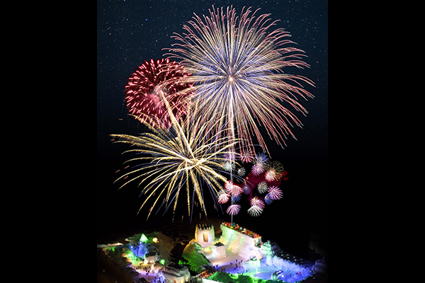 層雲峡温泉で毎年冬に行われる北海道冬の三大まつりの一つ、層雲峡温泉氷瀑まつり。12,000平方メートルの会場に、自然の厳しい寒さを生かして作られた大小様々な約30基の氷の造形物が煌びやかに立ち並びます。