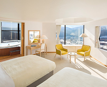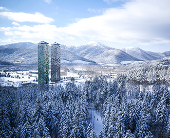 リゾートの高台、針葉樹の森に佇む、全室100㎡以上、展望ジェットバス・プライベートサウナ付のオールスイートのホテルです。ワンランク上のリゾートステイをお楽しみください。