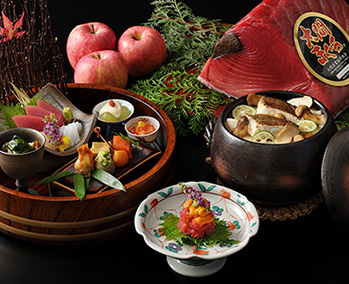 弘前から電車で約10分。古くから湯治場として親しまれてきた大鰐温泉に佇む温泉宿。「津軽四季の水庭」では、水辺をのぞむテラスで津軽文化や四季折々の魅力に触れ、寛ぎの時をお過ごしいただけます。伝統工芸「津軽こぎん刺し」の模様を現代風にデザインした客室「津軽こぎんの間」で寛ぎ、古代檜の湯殿で大鰐温泉のとろりとした湯につかる贅沢なひとときを。奥入瀬渓流や白神山地など青森観光にも便利な立地です。
