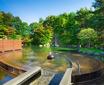 伊達なおもてなしが光るラウンジでは、せせらぎや渡る風に日常を忘れるひとときが流れます。