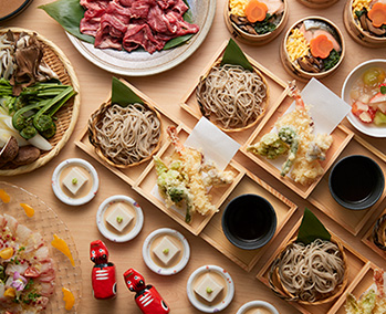 2022年4月にリニューアルした青森四大祭りのショーを楽しめる「みちのく祭りや」(当日ご予約・別料金大人1人1,500円〜5,000円※座席により料金が異なります)、古民家風の雰囲気のビュッフェレストラン「のれそれ食堂」や源泉かけ流しの露天風呂「浮湯」、馬車で巡る四季の庭園など、みちのく青森の魅力をまるごと体験できる温泉旅館です。