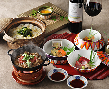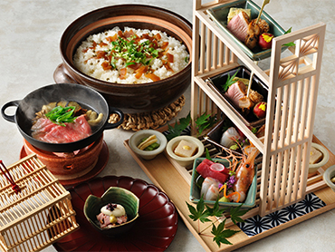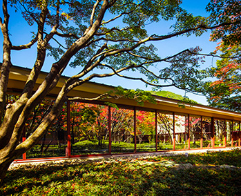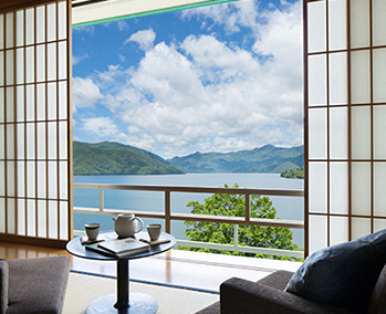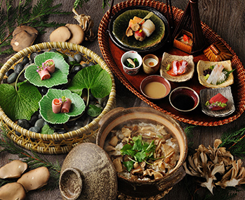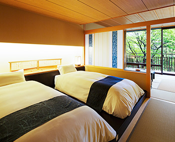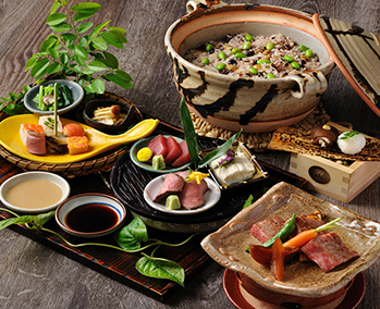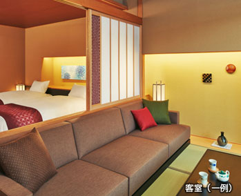 金沢からほど近い山代温泉で加賀文化に浸る滞在。紅殻格子の伝統建築棟は国の登録有形文化財。客室棟のお部屋は全室ベッド&ソファの快適空間に加賀友禅や水引などをちりばめた「加賀伝統工芸の間」です。夕食には美食家・北大路魯山人の思想を受け継ぐ「九谷焼の器と料理のマリアージュ」、夜は加賀獅子舞を披露します。